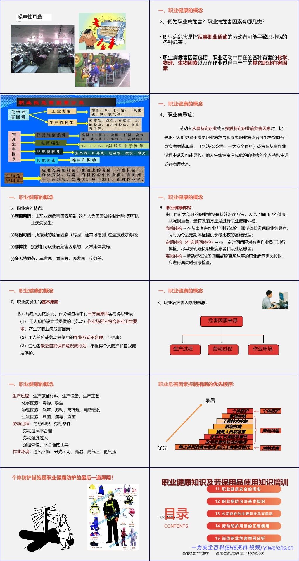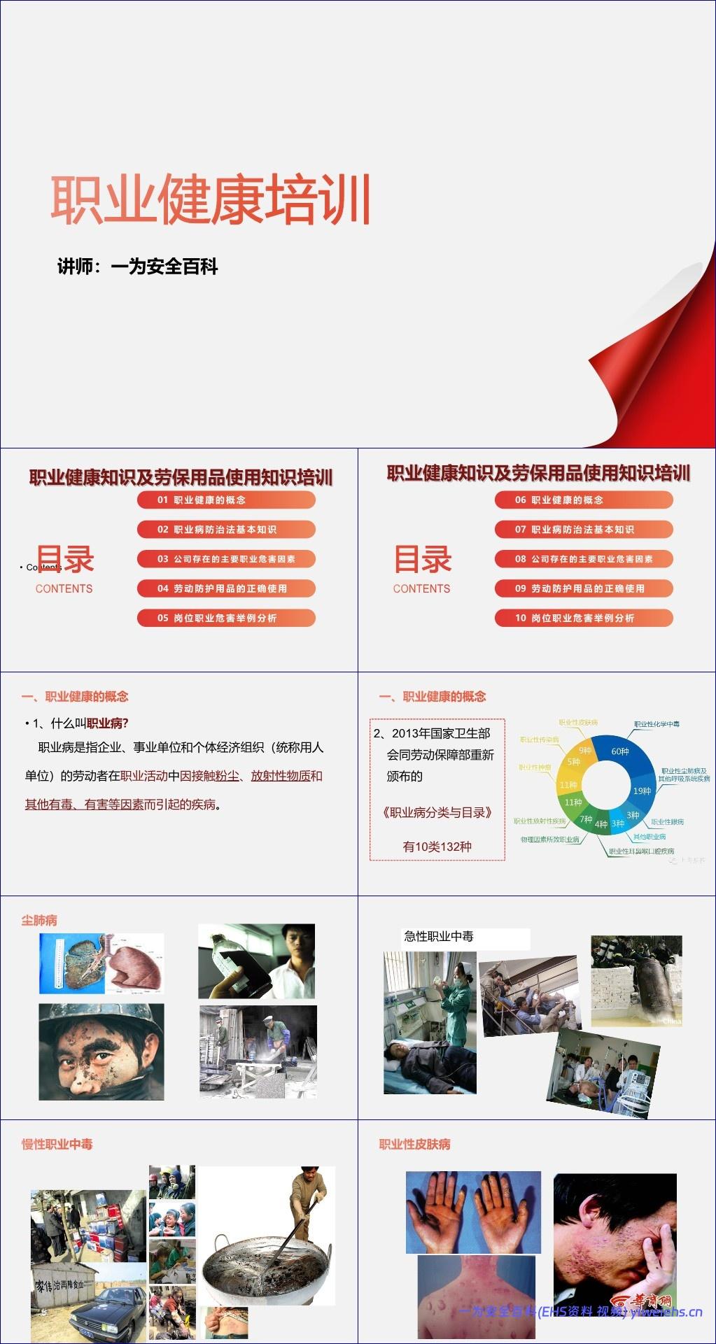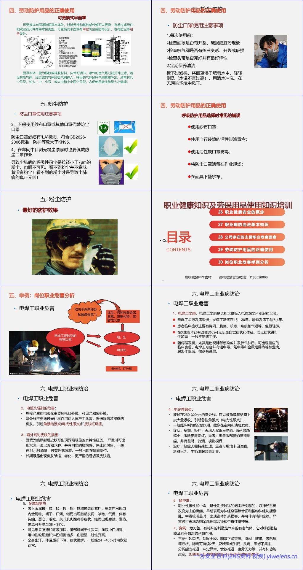 《企业职业健康培训》PPT文档系统全面地介绍了职业健康相关知识、法律法规要求、企业常见职业危害因素及劳动防护用品的正确使用方法,并通过电焊工岗位的典型职业危害案例进行深入剖析。全文内容逻辑清晰,兼具科普性与实操性,适用于企业员工岗前或在岗期间的职业健康教育培训。