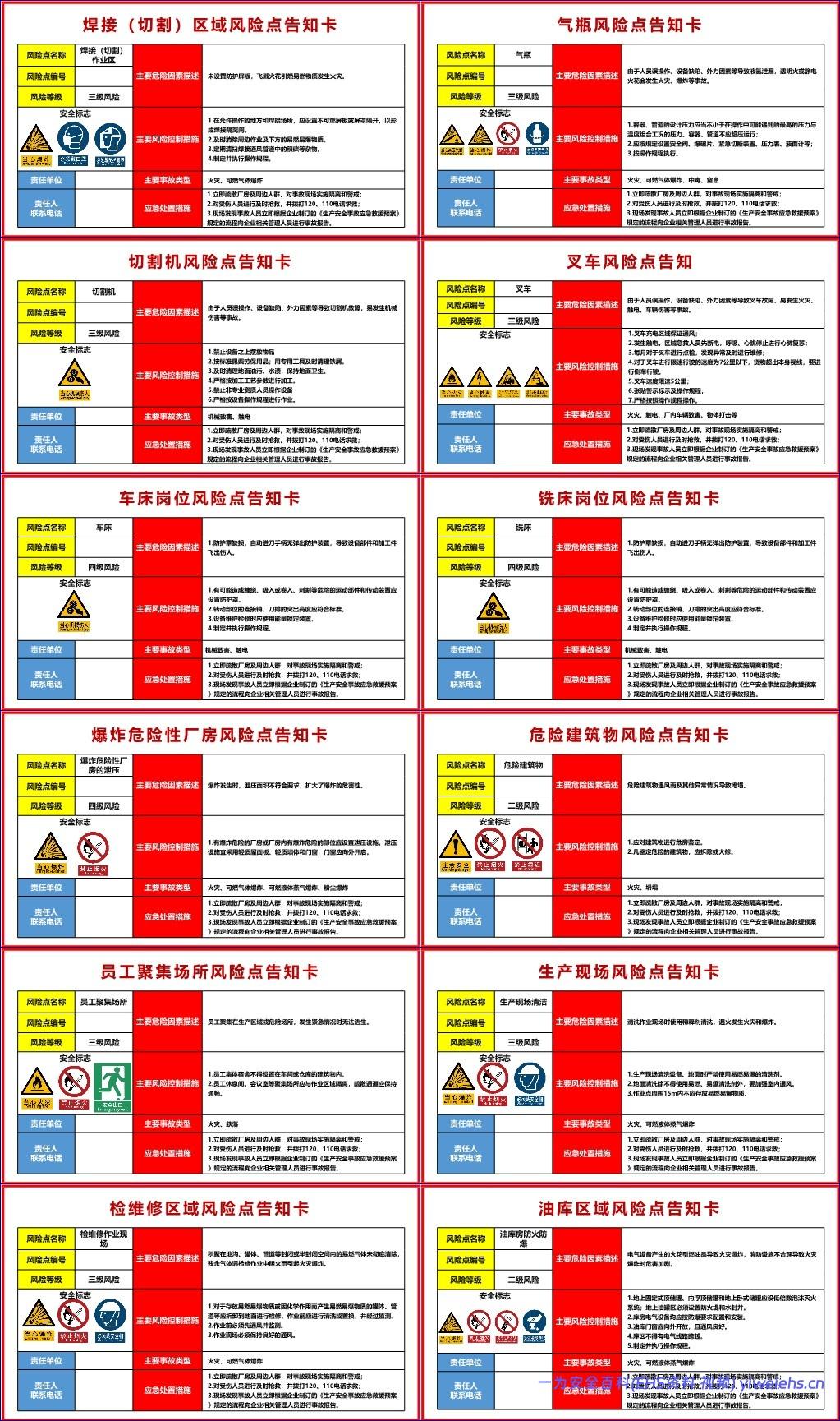 整个文档旨在通过标准化、可视化的告知卡形式,提升从业人员的安全意识,明确各环节的安全责任,并提供具体可行的风险控制与应急方案,从而有效预防和减少生产安全事故的发生。