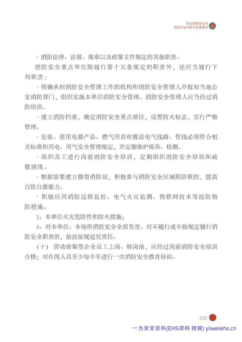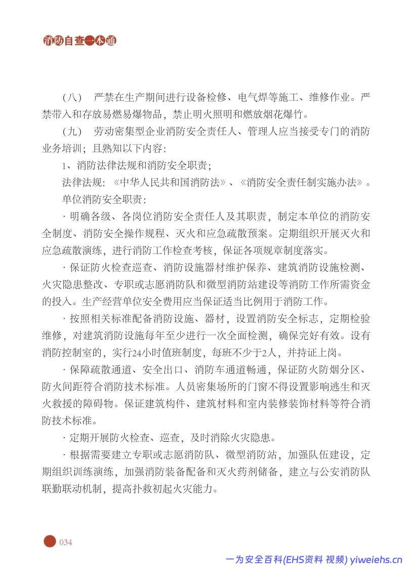 资料预览:消防自查一本通“劳动密集型企业”消防安全风险与排查整治.pdf;