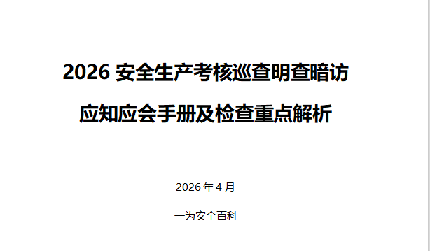 文档《2026中央安全生产考核巡查明查暗访应知应会手册及检查重点解析》是一份面向企业应对国家级安全检查的实操性指南。其核心内容围绕安全生产这一根本目标,系统阐述了中央考核巡查的完整流程(听取汇报、查阅资料、现场检查、员工访谈、反馈整改),并通过大量真实案例揭示了企业在落实安全生产责任制、隐患排查治理等方面的普遍性、深层次问题。