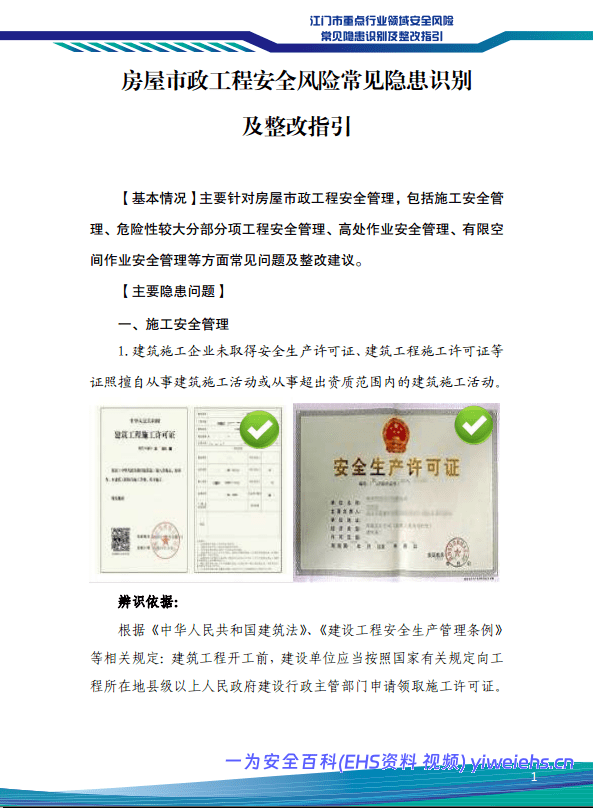 一、房屋市政工程安全风险常见隐患识别及整改指引 ……….. 1