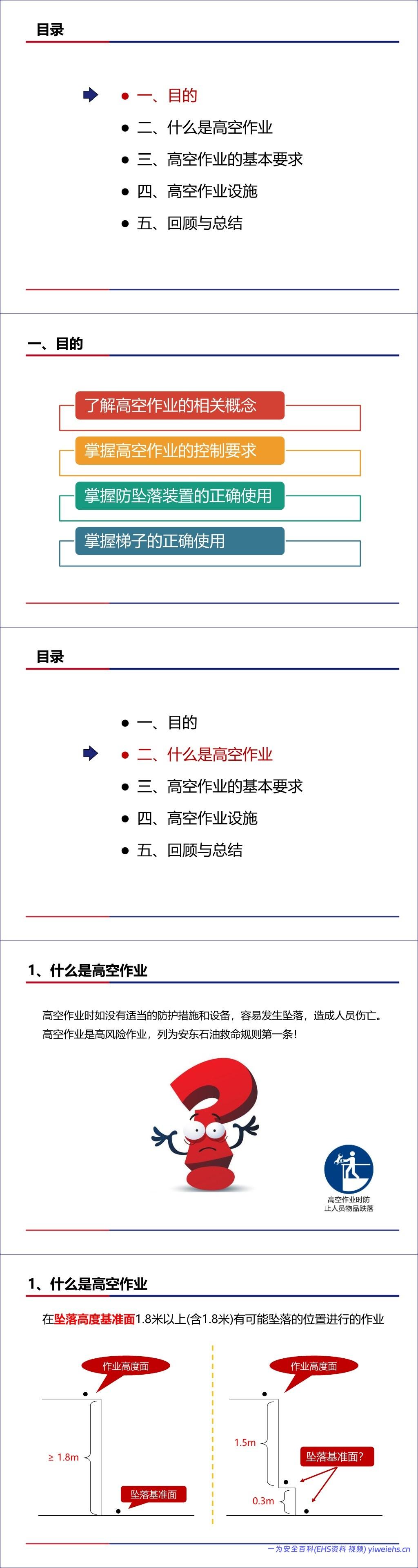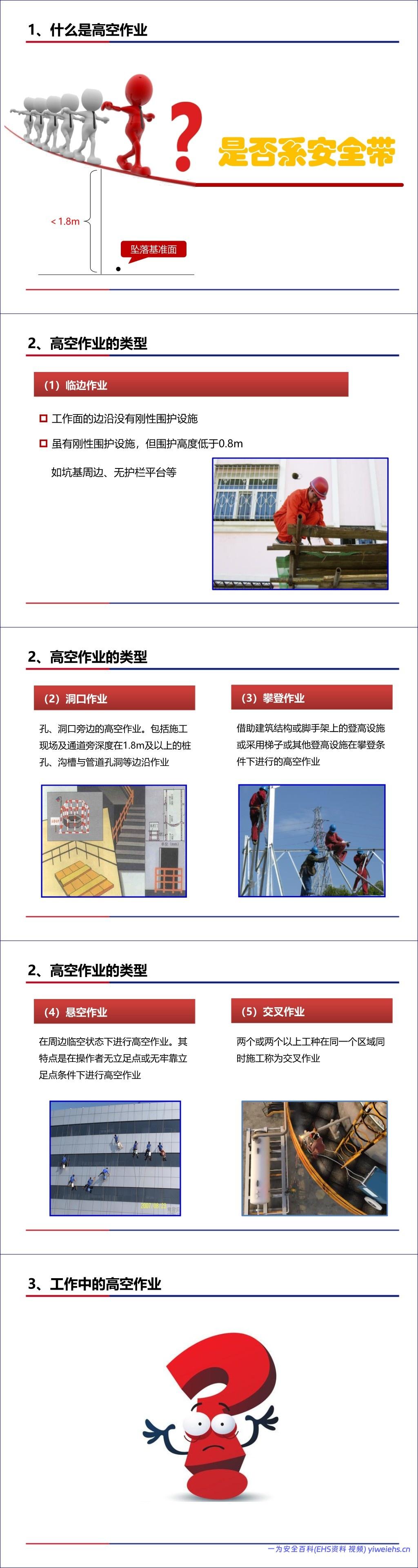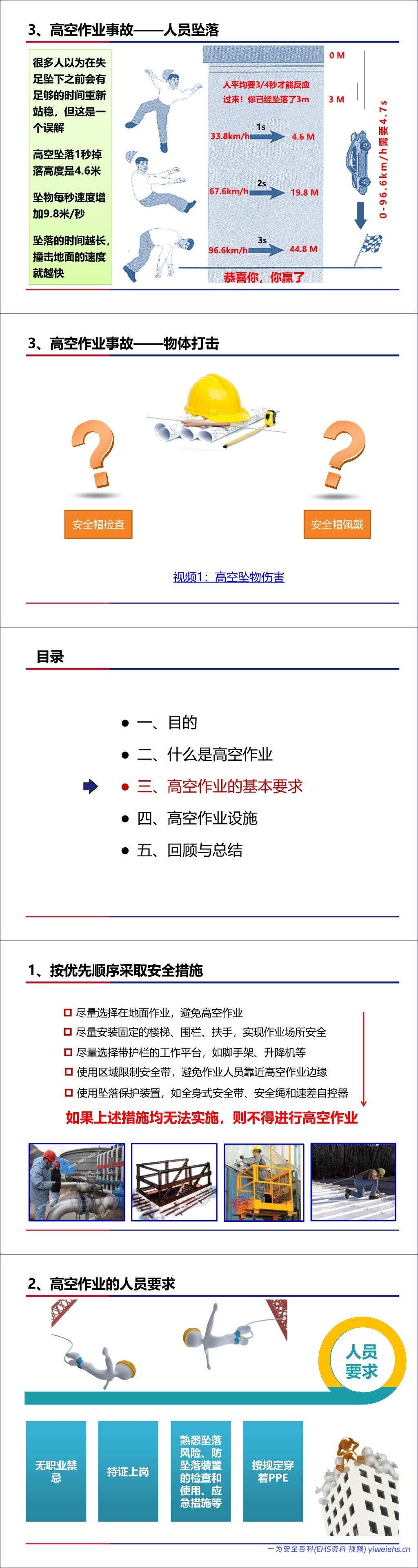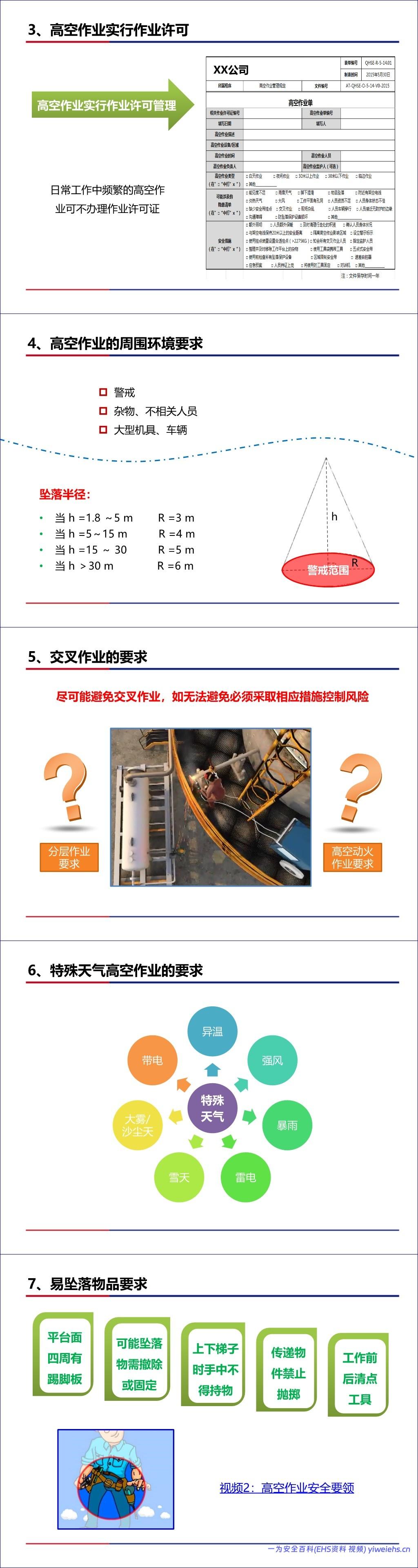总结而言,该文档是一份全面的高空作业安全管理指南,强调通过工程控制、规范管理和正确使用PPE来预防高坠事故。