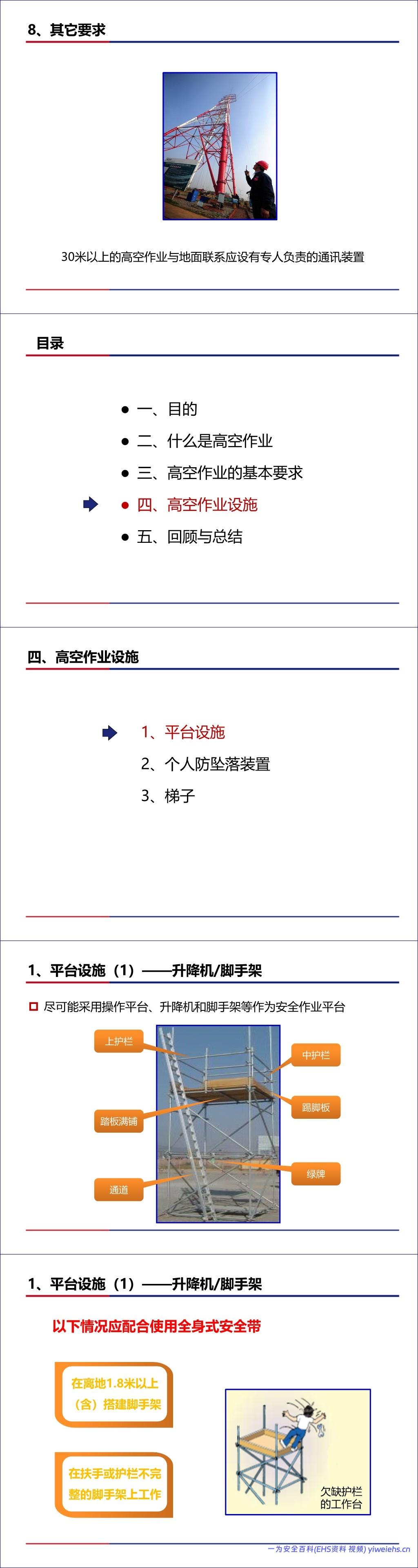 最后,文档重点介绍了三类高空作业设施: