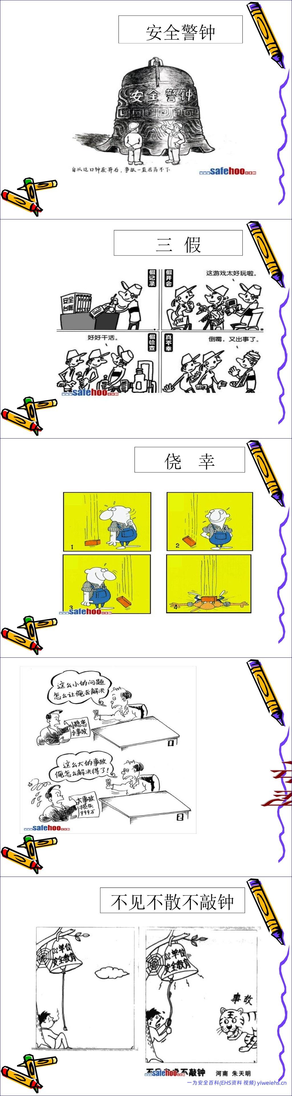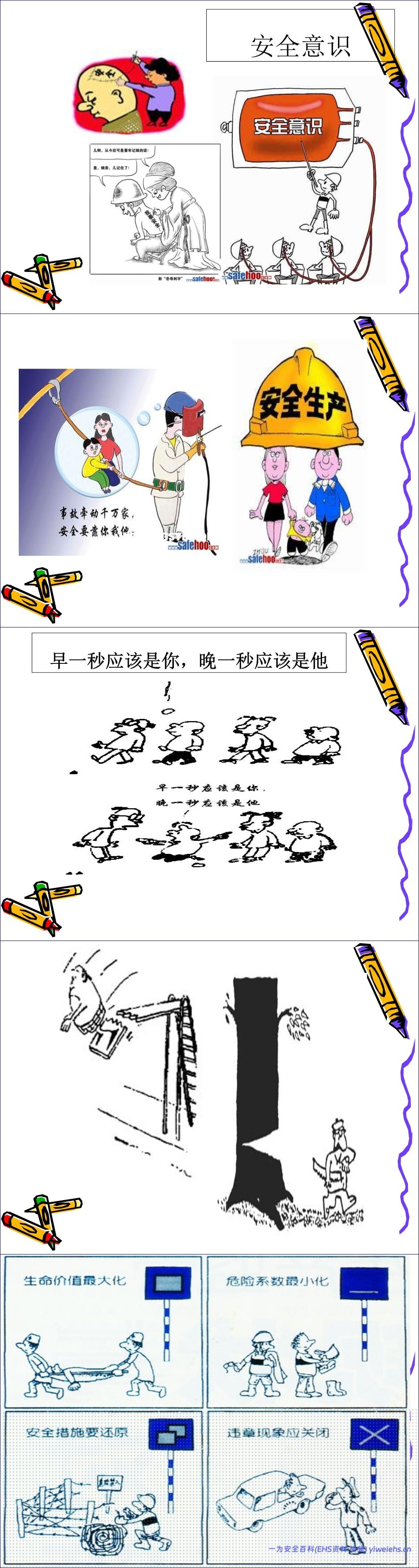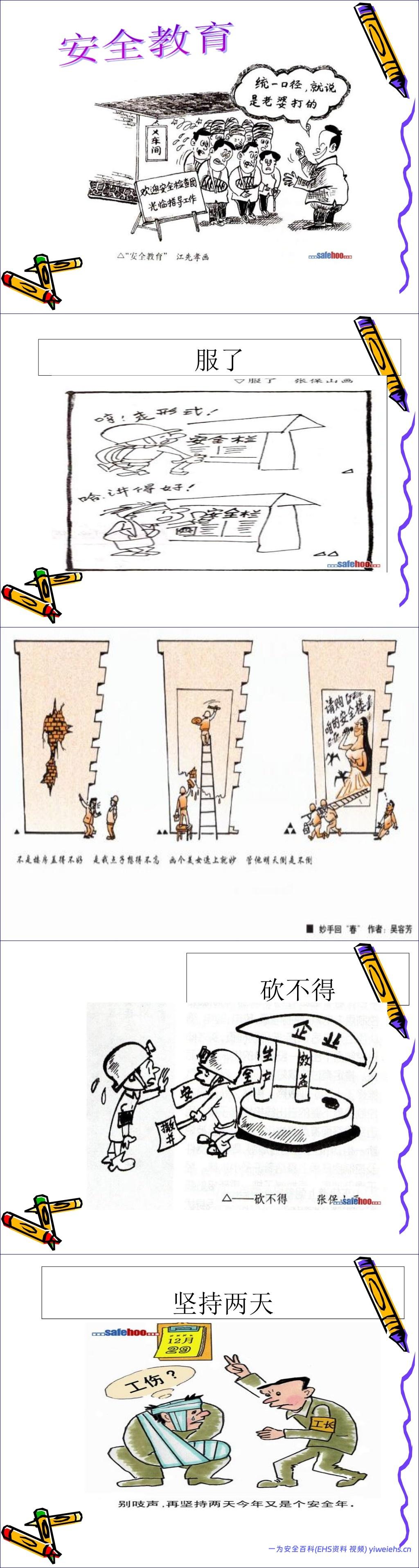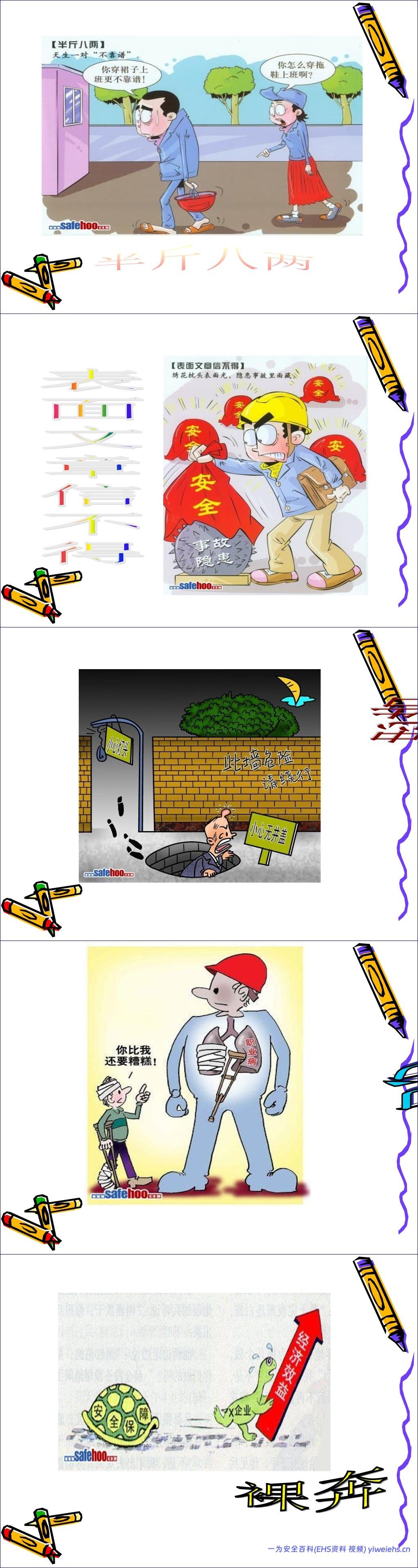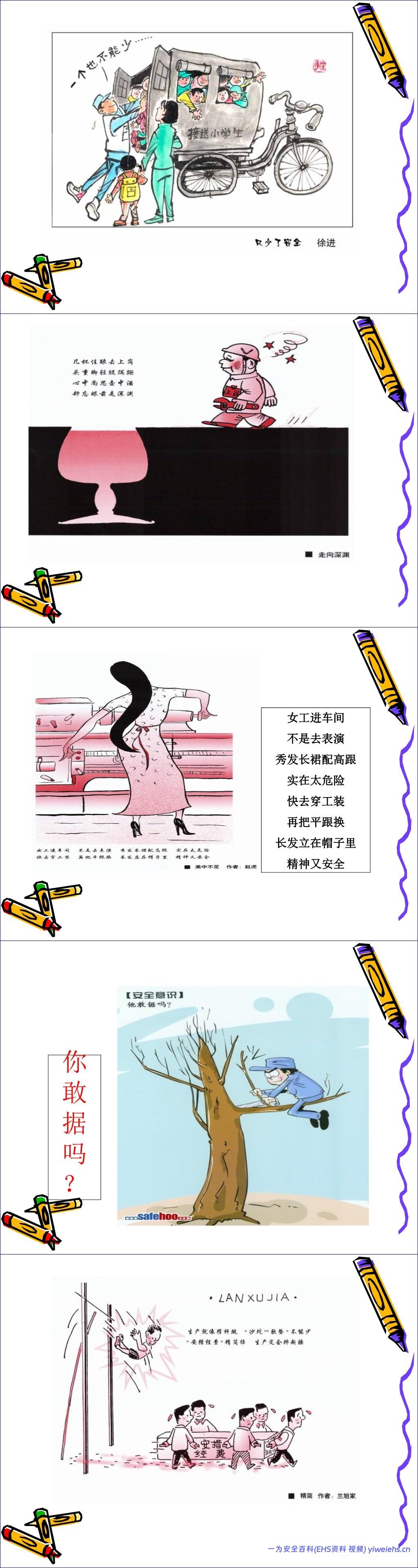 该文档《100张安全漫画警示教育》通过一系列生动形象的漫画形式,深入浅出地传达了安全生产的重要性和必要性。内容强调“安全生产重于泰山”,指出安全生产是一个整体,需要全员参与和重视,任何违章行为都可能带来严重后果,正如“违章就是与狼共舞”。文档特别关注工作场所的安全规范,例如女工进车间必须穿戴合适的工装、平跟鞋,并将长发置于帽内,以避免安全隐患。此外,文档反复强调“安全意识”的重要性,提倡“三思后行”而非“事后反思”,并提出“三不伤害”原则(即不伤害自己、不伤害他人、不被他人伤害)作为安全工作的基本准则。安全教育需常态化、日常化,不能流于形式或仅在事故发生后才重视,因为“安全重在平时,等事故发生后就‘晚了’”。文档还通过“四个零”、“三道安全防线”等概念,倡导建立全面的安全管理体系,杜绝侥幸心理,做到“安全就要做到100%”。