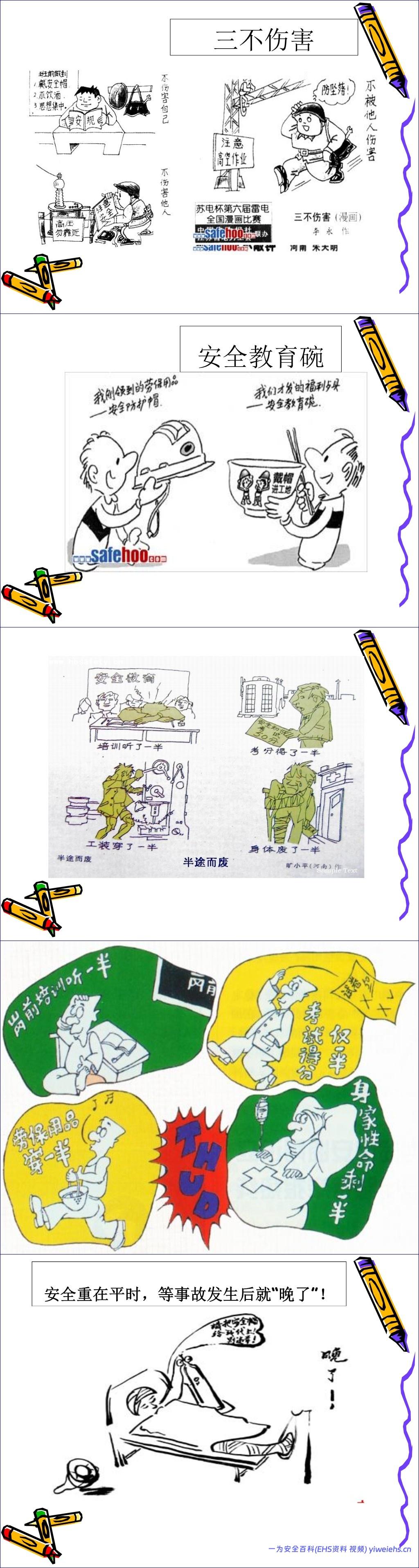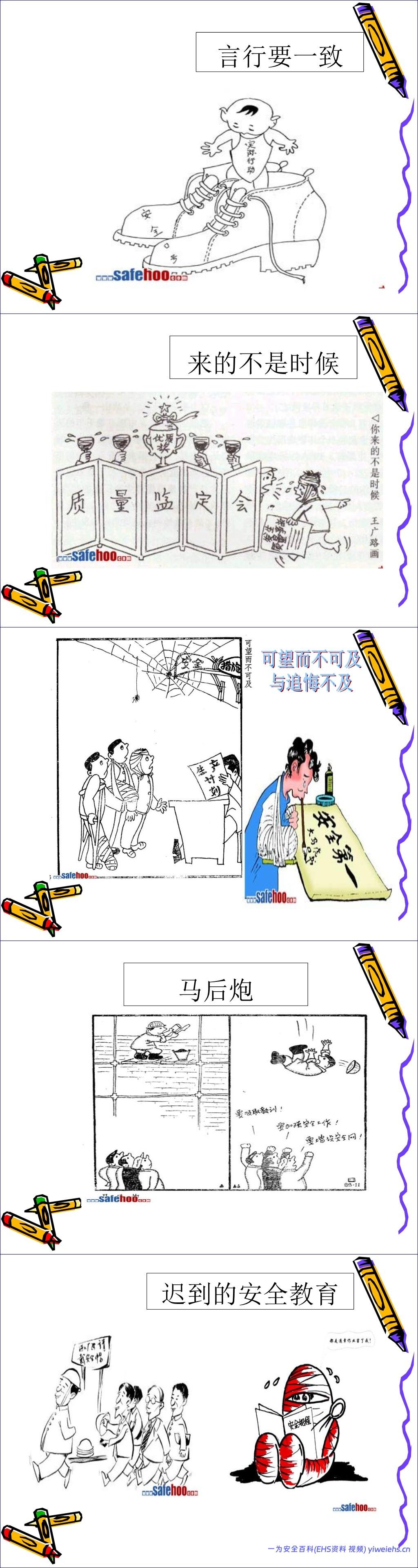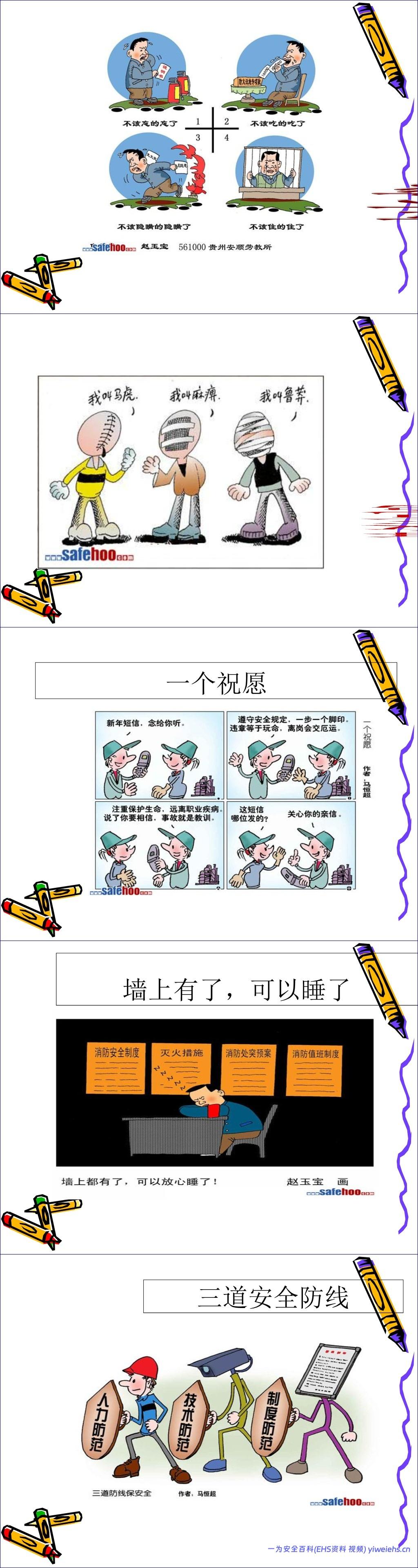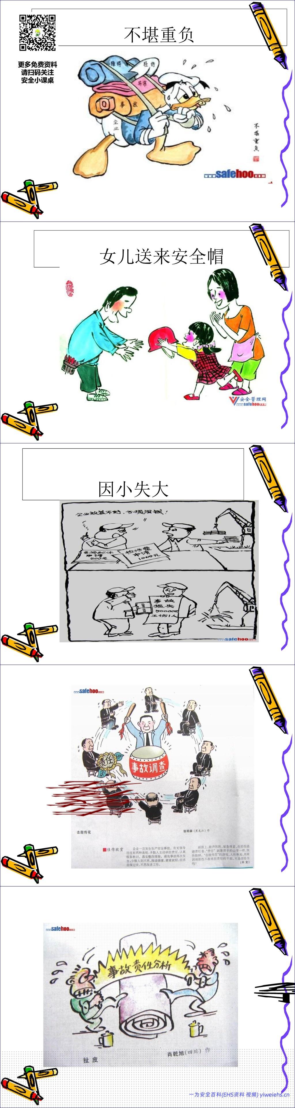 该文档《100张安全漫画警示教育》通过一系列生动形象的漫画形式,深入浅出地传达了安全生产的重要性和必要性。内容强调“安全生产重于泰山”,指出安全生产是一个整体,需要全员参与和重视,任何违章行为都可能带来严重后果,正如“违章就是与狼共舞”。文档特别关注工作场所的安全规范,例如女工进车间必须穿戴合适的工装、平跟鞋,并将长发置于帽内,以避免安全隐患。此外,文档反复强调“安全意识”的重要性,提倡“三思后行”而非“事后反思”,并提出“三不伤害”原则(即不伤害自己、不伤害他人、不被他人伤害)作为安全工作的基本准则。安全教育需常态化、日常化,不能流于形式或仅在事故发生后才重视,因为“安全重在平时,等事故发生后就‘晚了’”。文档还通过“四个零”、“三道安全防线”等概念,倡导建立全面的安全管理体系,杜绝侥幸心理,做到“安全就要做到100%”。