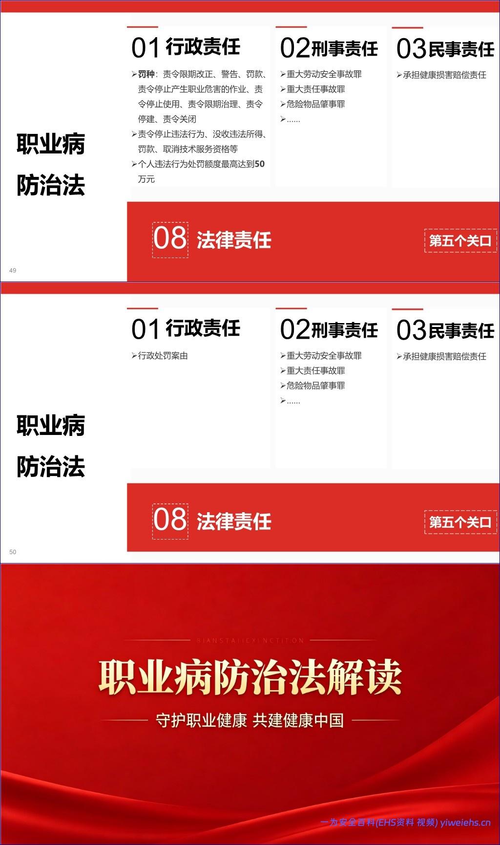 第四个关口:监督检查。明确了卫生行政部门与安全生产监督管理部门在职业病防治工作中的不同职责分工,共同对用人单位进行监督。