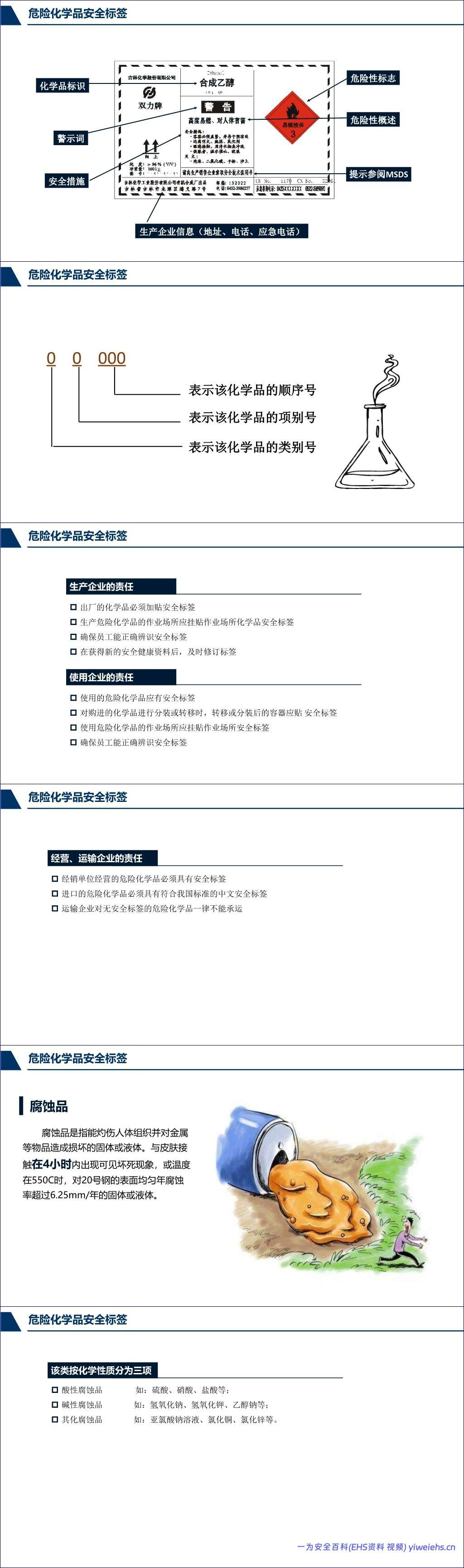 文档强调了危险化学品安全标签的重要性,指出其是向使用者传递安全信息的载体,并规定了标签的内容(如化学品标识、警示词、危险性概述、安全措施等)以及生产、使用、经营和运输企业在标签管理上的责任。