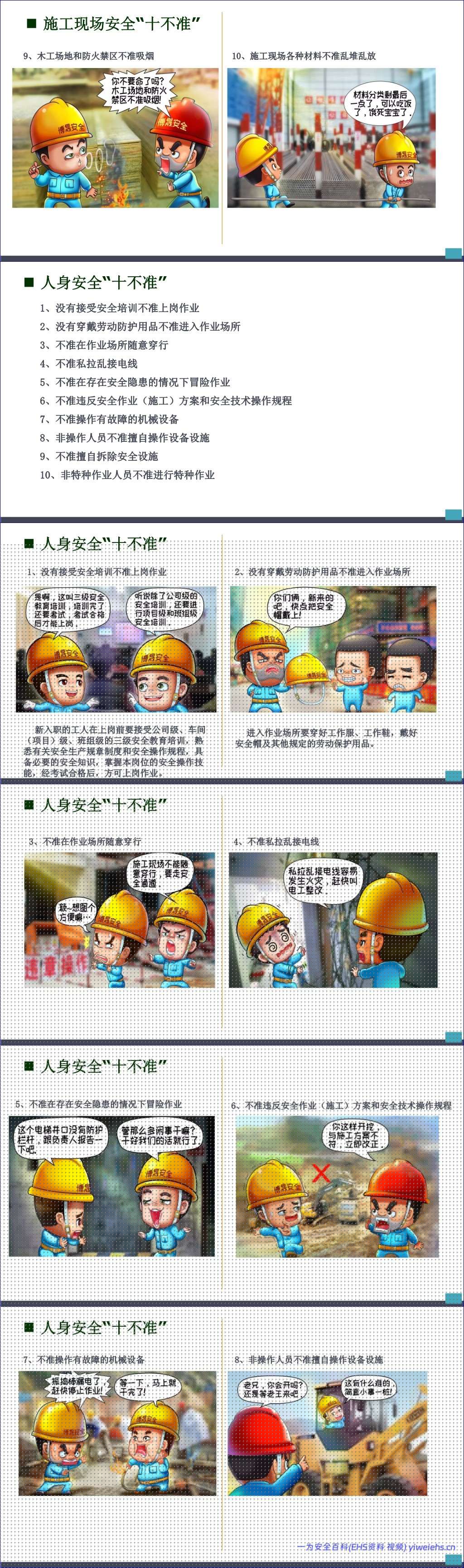 该文档《十不准十不干丨漫画图册》以图文并茂的形式,系统性地阐述了多个高危作业领域的安全规范,旨在强化从业人员的安全意识,预防事故发生。内容主要分为以下几大板块: