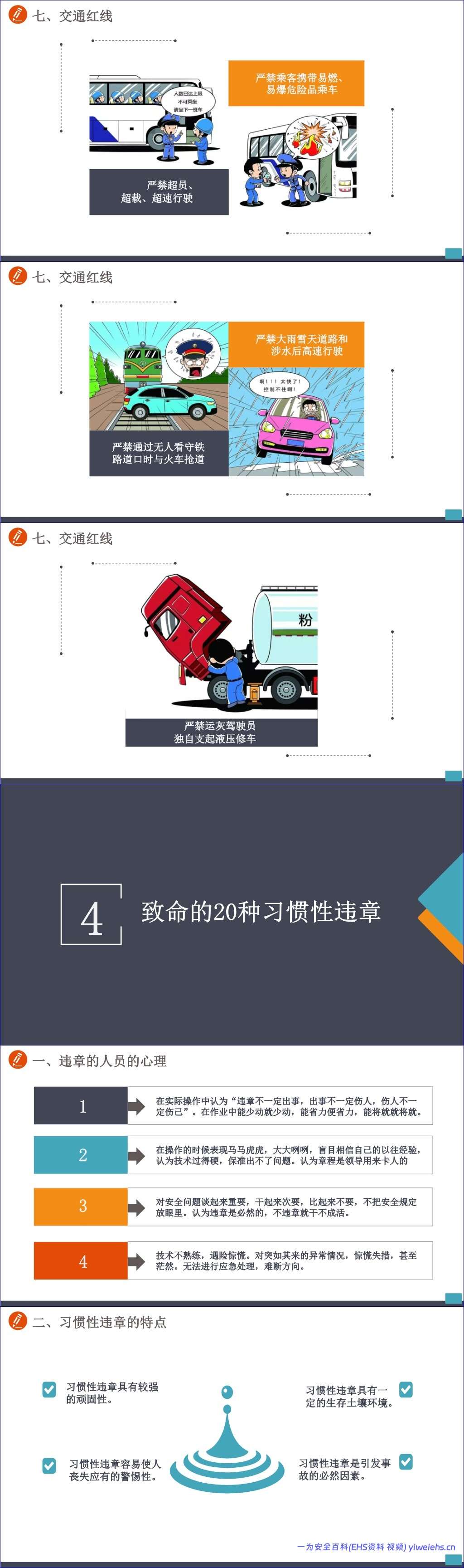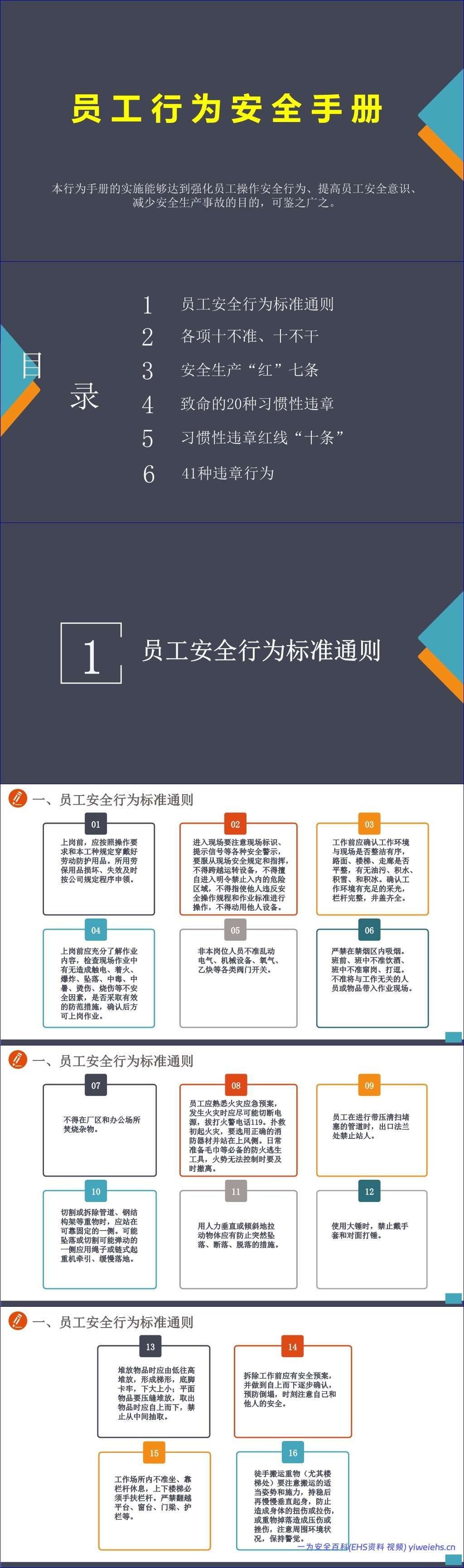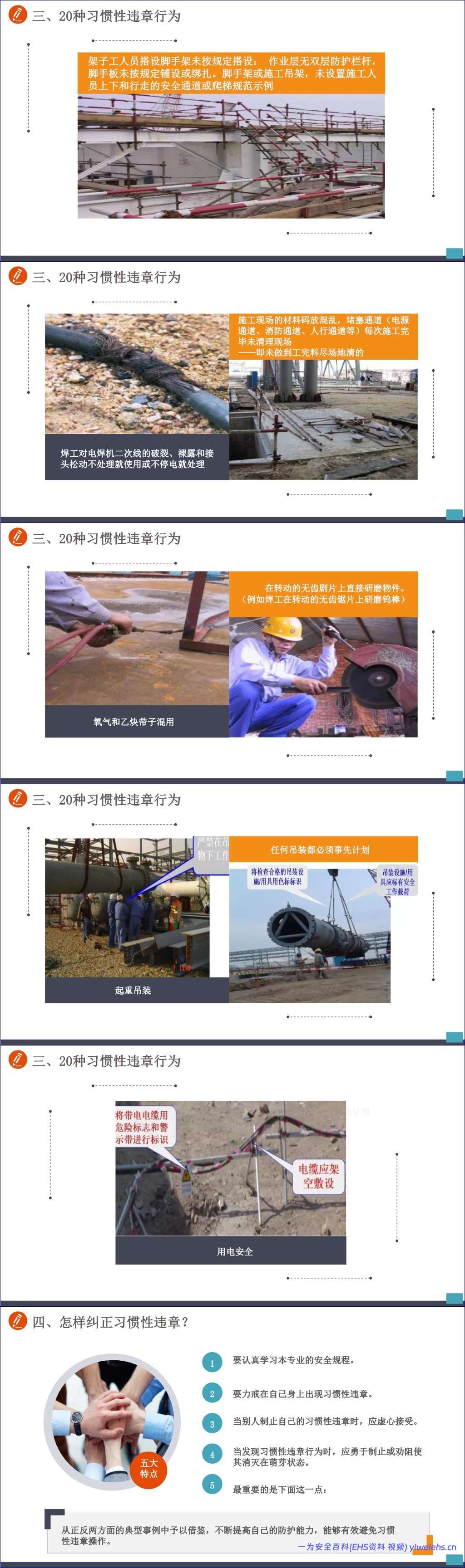 手册还深入剖析了41种违章行为和致命的20种习惯性违章,揭示了违章背后的心理(如侥幸、麻痹、懒惰)及其严重后果,并提供了纠正方法。这有助于员工从思想根源上认识到安全的重要性。