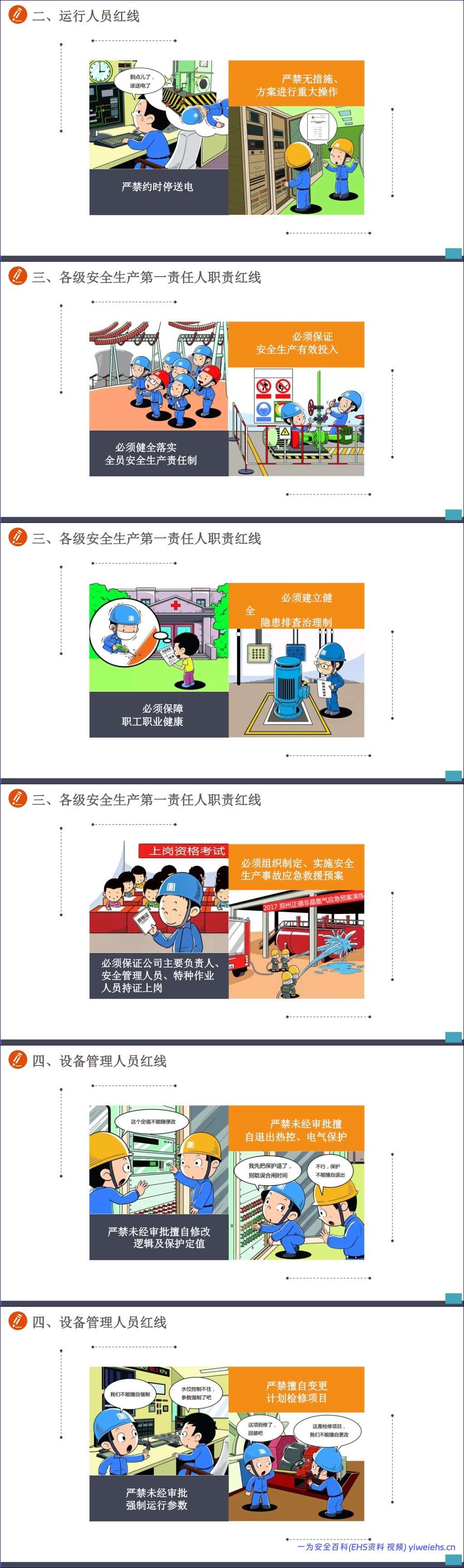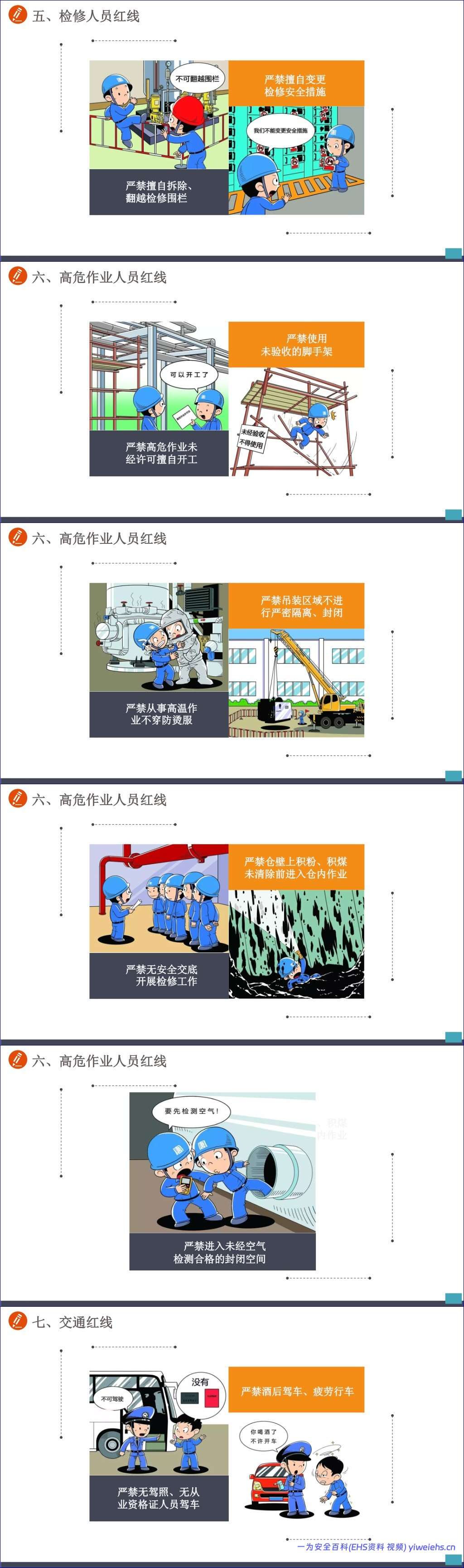 此外,手册还特别强调了安全生产“红”七条,从意识、运行、管理、检修、高危作业到交通等多个维度,为各级人员设定了不可逾越的职责和行为底线。最后,习惯性违章红线“十条”再次聚焦于最常见也最危险的日常违规行为,如不按规定穿戴劳保用品、高处作业不系安全带、酒后驾驶等,起到了强烈的警示作用。