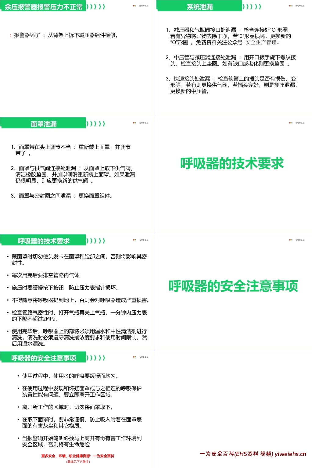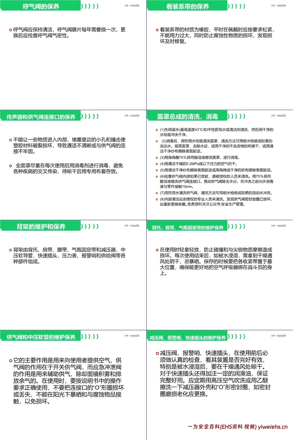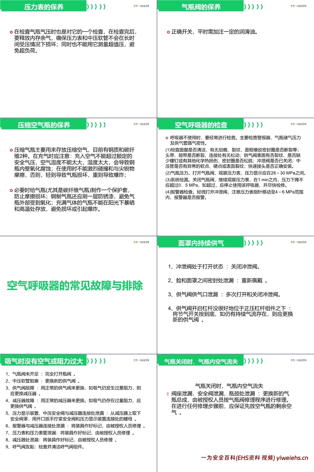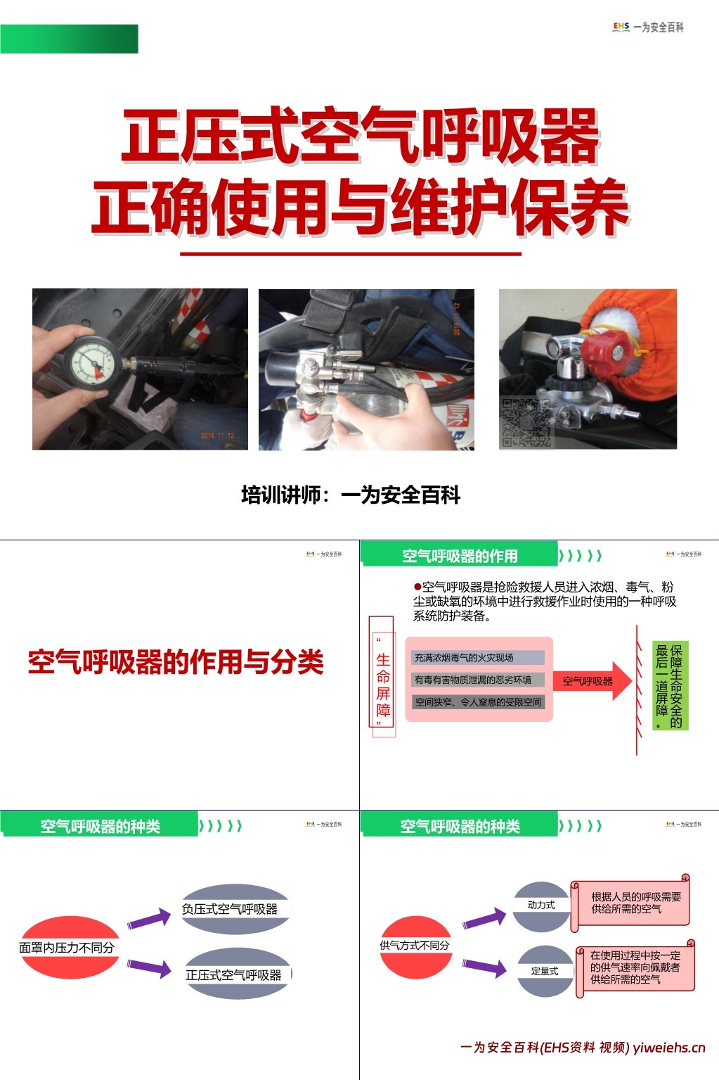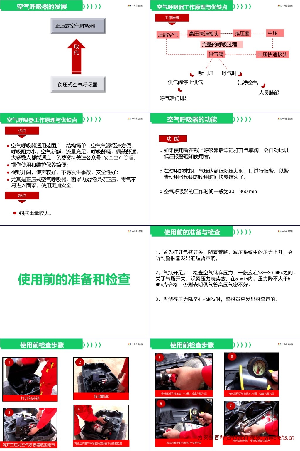 【PPT】正压式空气呼吸器正确使用与维护保养内容介绍: