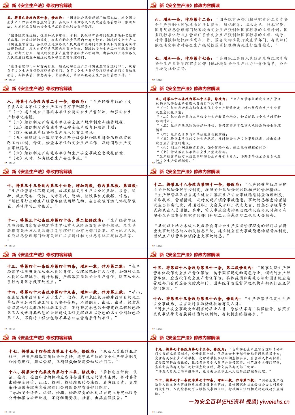 本次修订对多条法律条文进行修改,除上述提及的责任划分、监管要求、处罚规定等方面调整外,还包括对部分条文用词的修改,如将 “安全生产监督管理部门” 修改为 “应急管理部门”“负有安全生产监督管理职责的部门”,将 “安全生产责任制” 修改为 “全员安全生产责任制”,调整部分条款中的行业表述、行为描述等,同时删去部分条文中的冗余表述,使法律条文更严谨、明确,适应安全生产工作新形势、新要求。