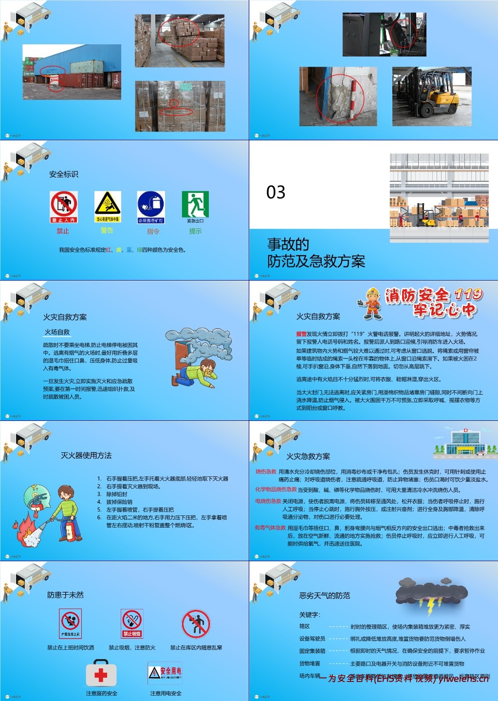 【PPT】物流仓库安全教育培训课程内容介绍: