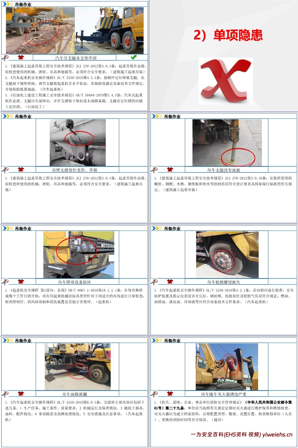此类隐患聚焦于吊装作业中某一环节的单一违规问题,每个隐患均对应明确的安全规范条款,具体可分为以下几类: