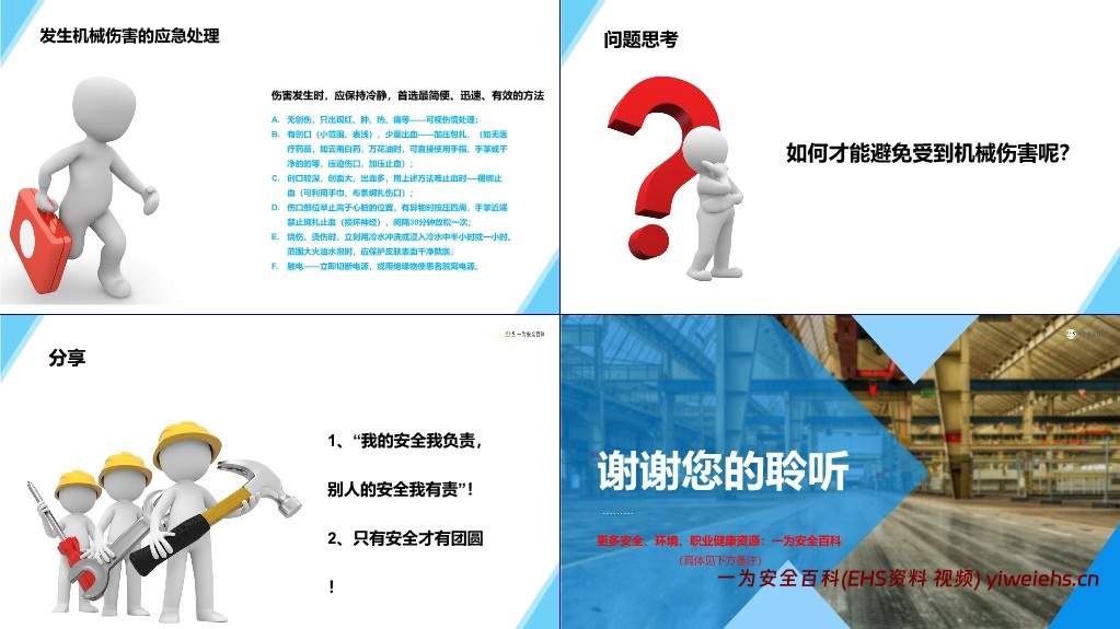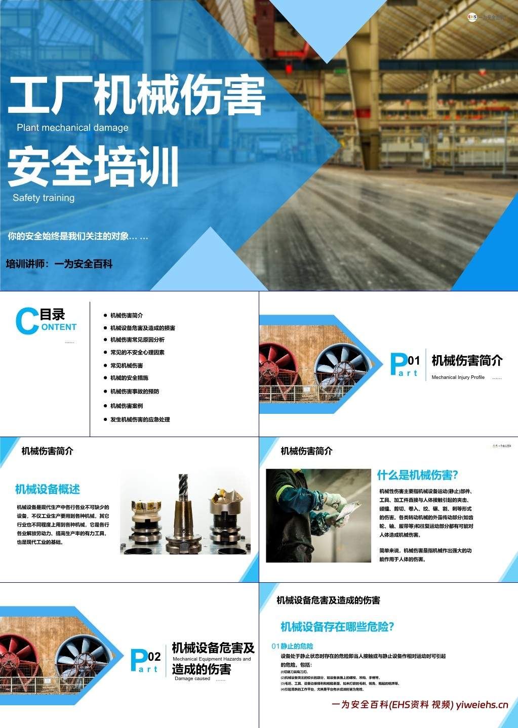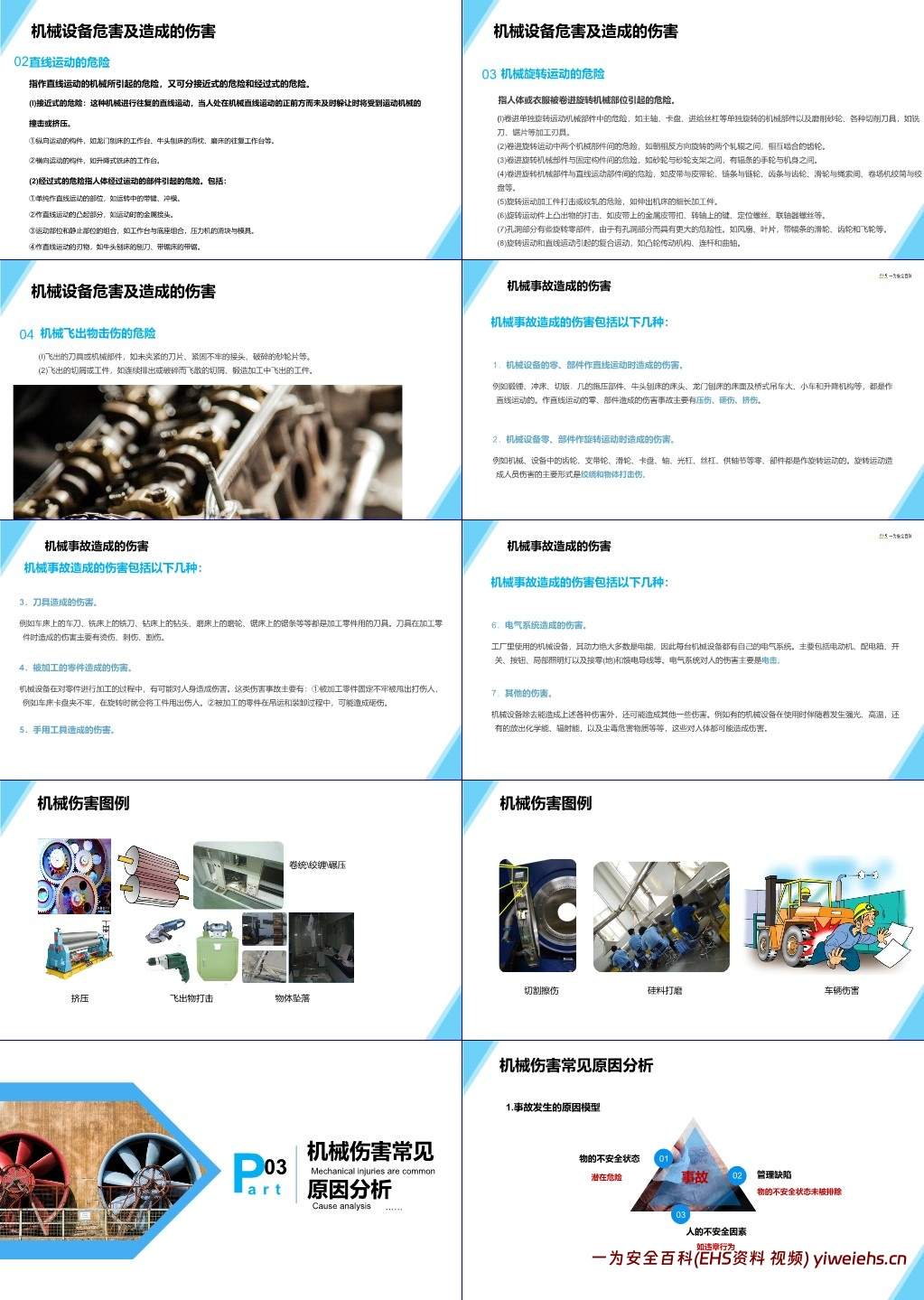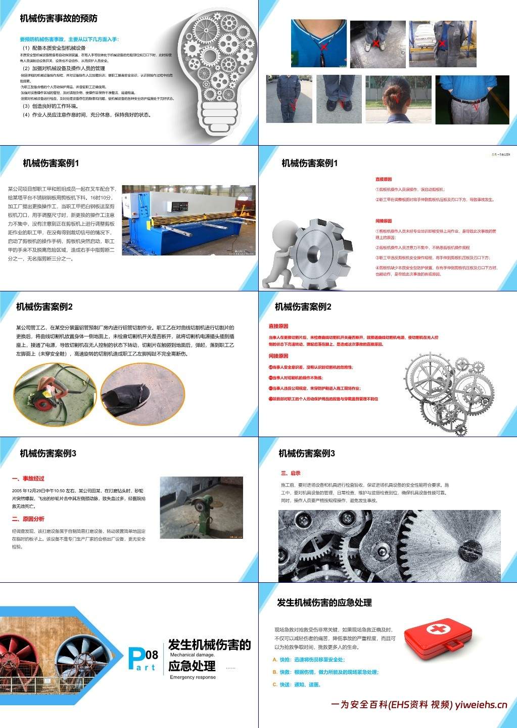 该文档是一份围绕工厂机械伤害展开的安全培训资料,旨在提升工厂人员对机械伤害的认知、预防及应急处理能力,保障人员作业安全。