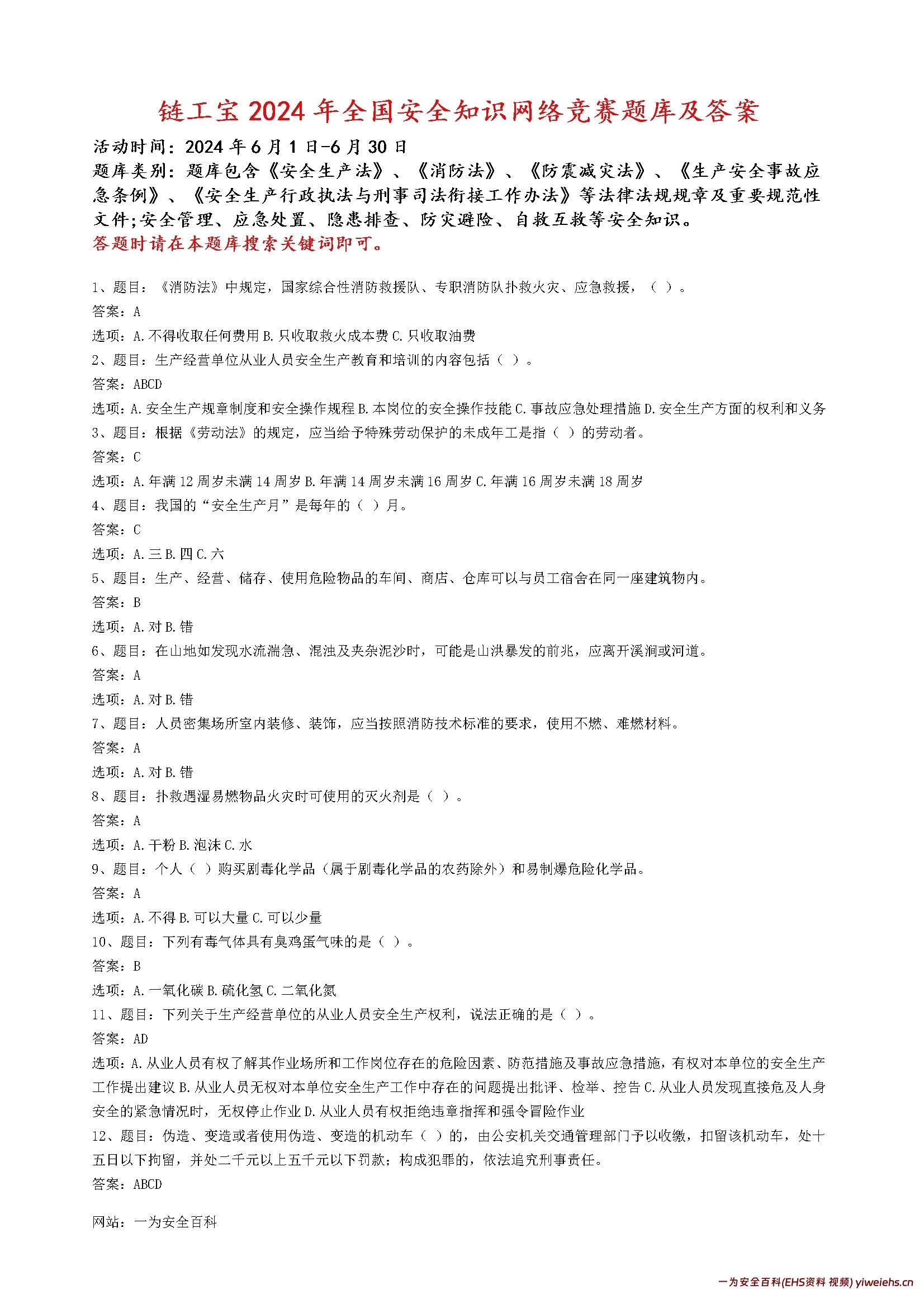 【word】链工宝2024年全国安全知识网络竞赛题库及答案(完整题库汇总版)