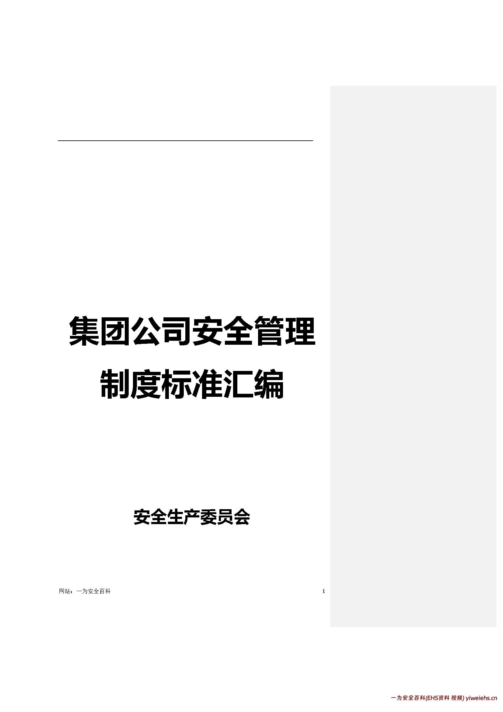 【word】集团公司安全生产管理制度汇编目录: