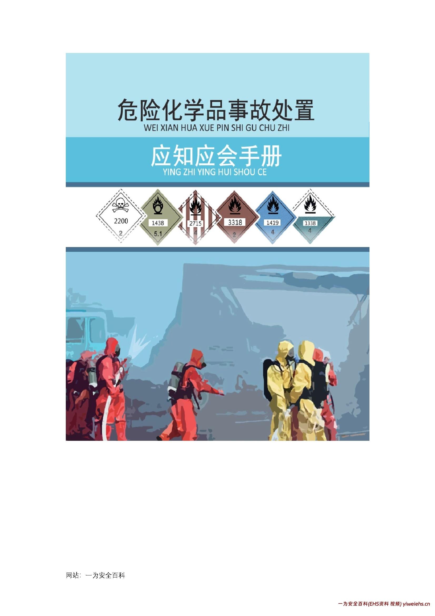 【word】危险化学品事故处置应知应会手册 【word】危险化学品事故处置应知应会手册目录: 总则 危险化学品事故处置基本程序 初期管控 侦检和辨识危险源 灾情评估 等级防护 信息管理 现场处置 全面洗消 移交现场 附录 1 常见危险化学品处置要点速查表 2 常见遇水易燃烧物质速查表 3 常见泡沫灭火剂应用速查表 4 常用液化气钢瓶型号和参数速查表 5 LPG、CNG、LNG汽车罐车结构部位速查表 6 工业气体瓶颜色速查表 7 工业管道识别颜色速查表 8化学事故应急救援单位联系方式