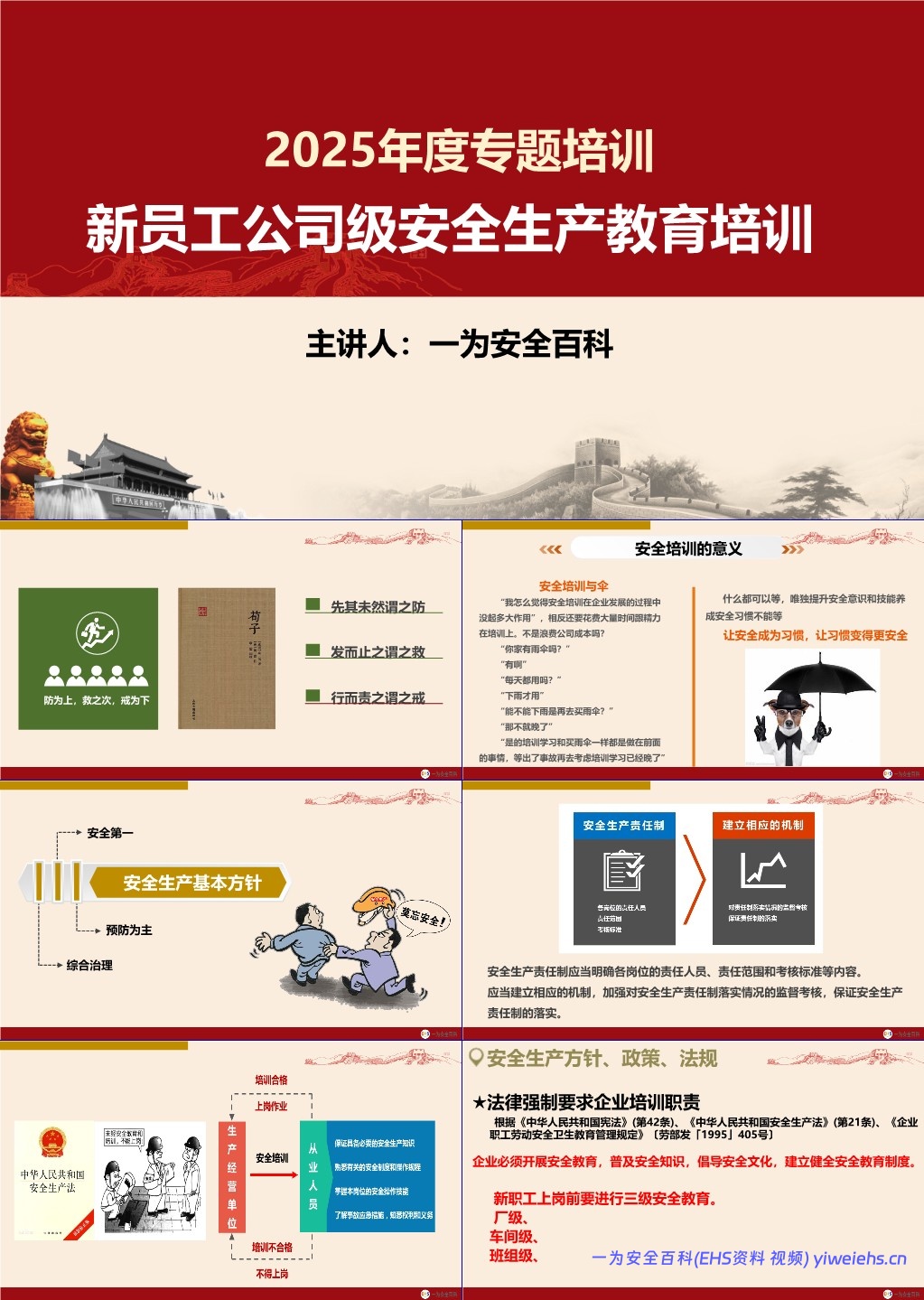 【PPT】2025年新员工公司级安全生产教育培训内容介绍: