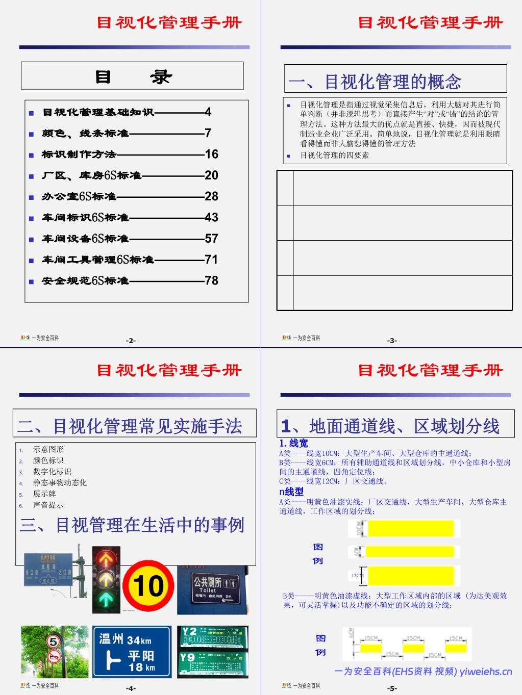 该手册是一套系统规范厂区 6S 目视化管理的指导文件,涵盖基础知识、各类标准及实施方法,旨在通过视觉化手段实现高效管理,提升厂区运营规范性与安全性。