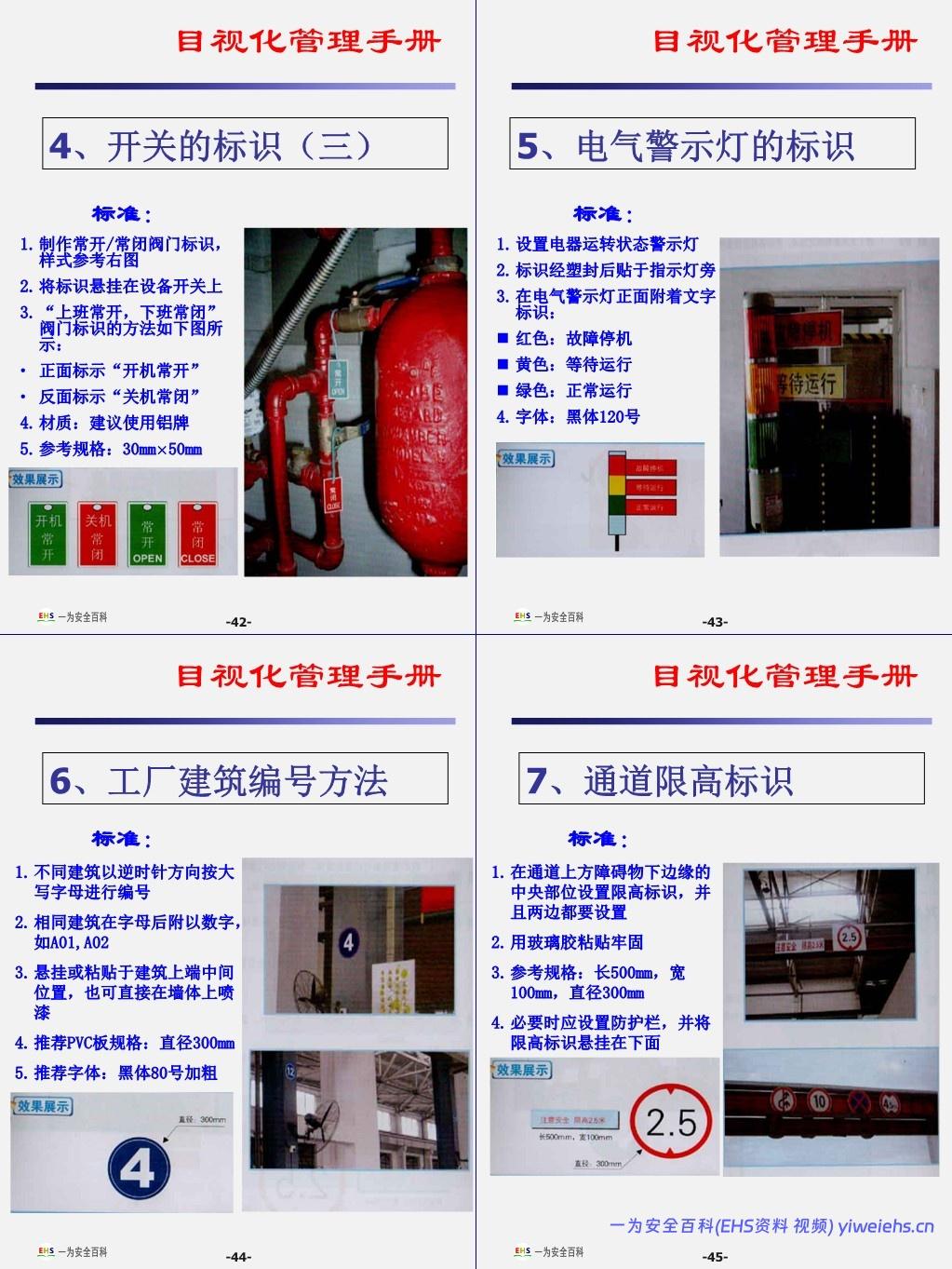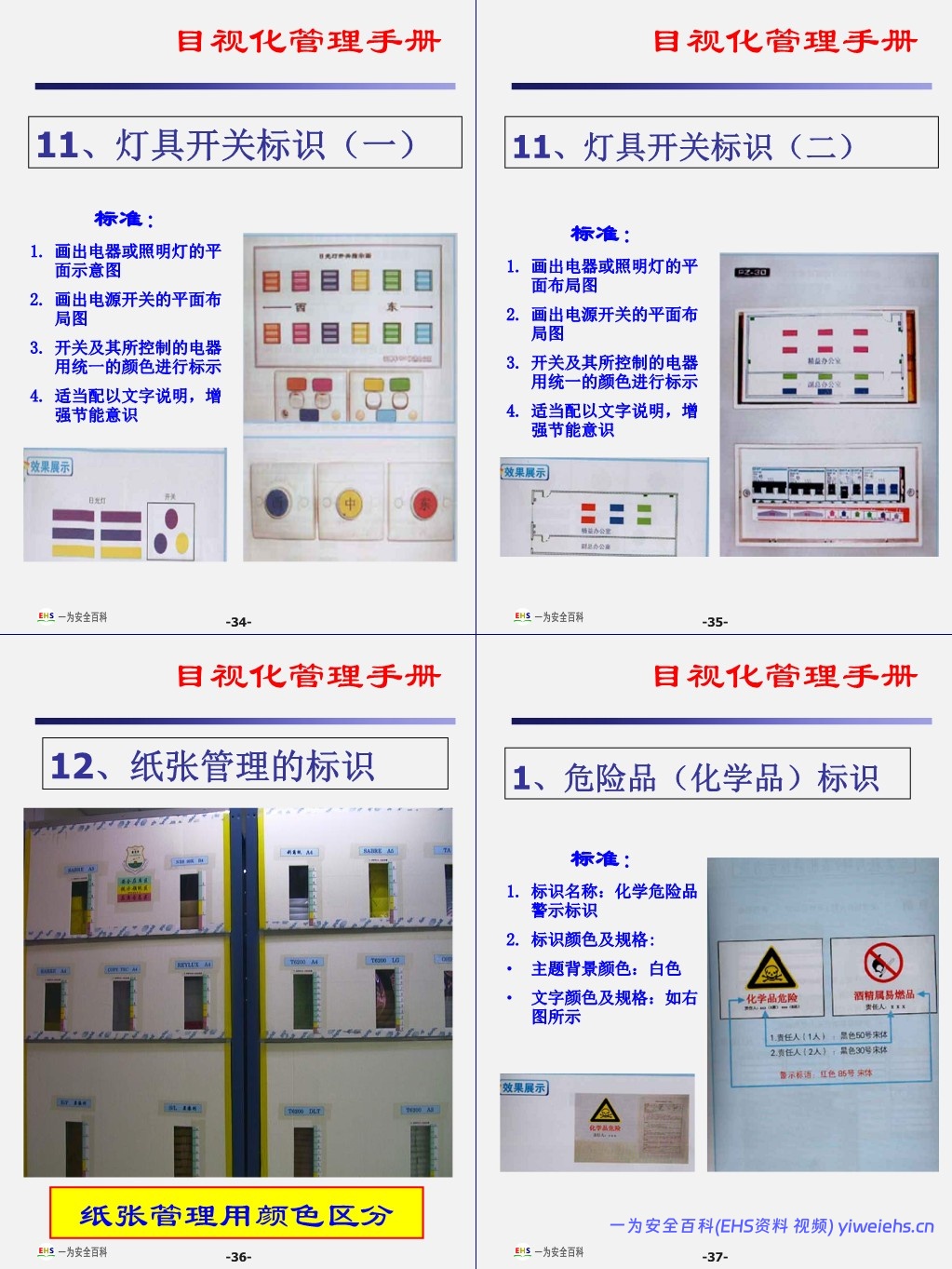 常见实施手法:包括示意图形、颜色标识、数字化标识、静态事物动态化、展示牌、声音提示等。