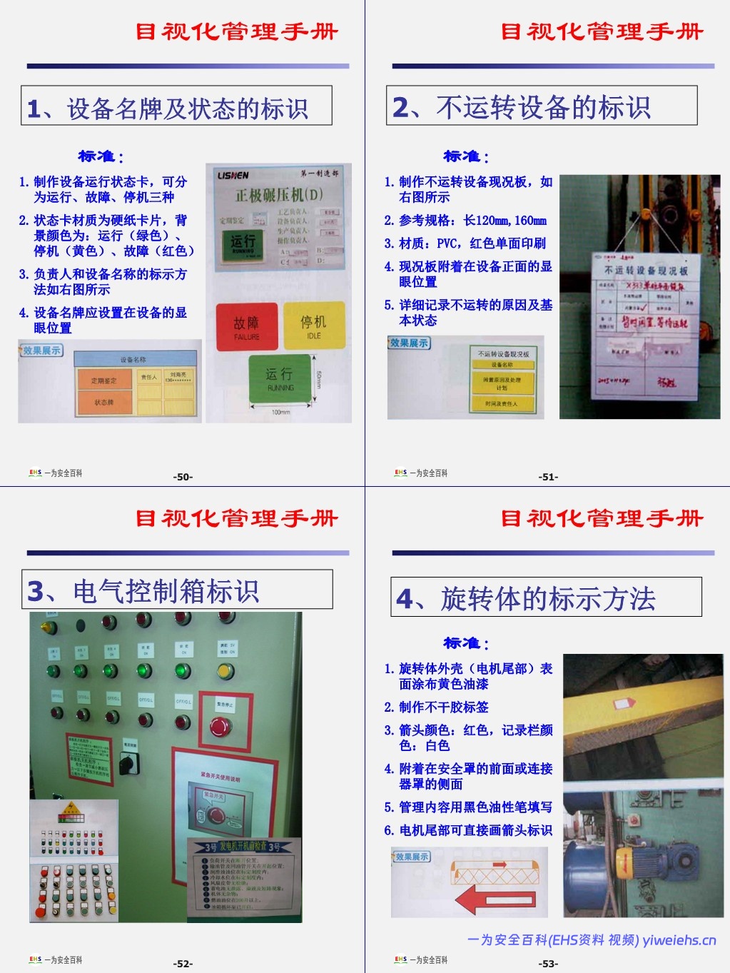 设备名牌及状态标识:制作硬纸卡片状态卡(绿 – 运行、黄 – 停机、红 – 故障),设备名牌含名称、各负责人信息,放于显眼位置,便于故障及时处理。