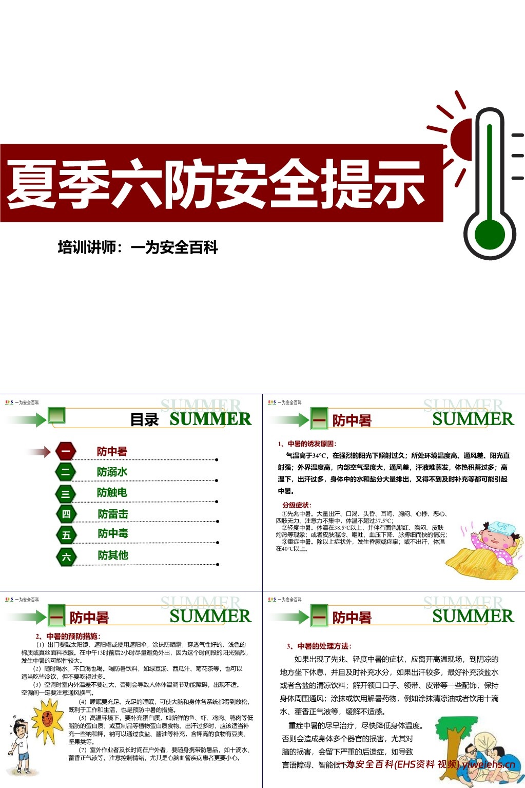 该文档围绕夏季安全防护展开,提出 “夏季六防” 安全提示,具体内容如下: