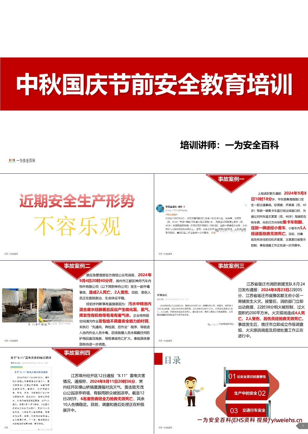 该文档是 2024 年中秋国庆节前的安全教育培训课件,核心围绕节前安全保障展开,主要内容如下: