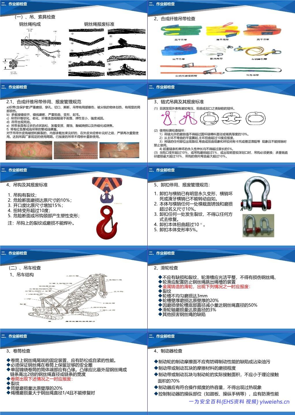 涵盖各类吊索具及起重机关键部件的检查与报废标准: